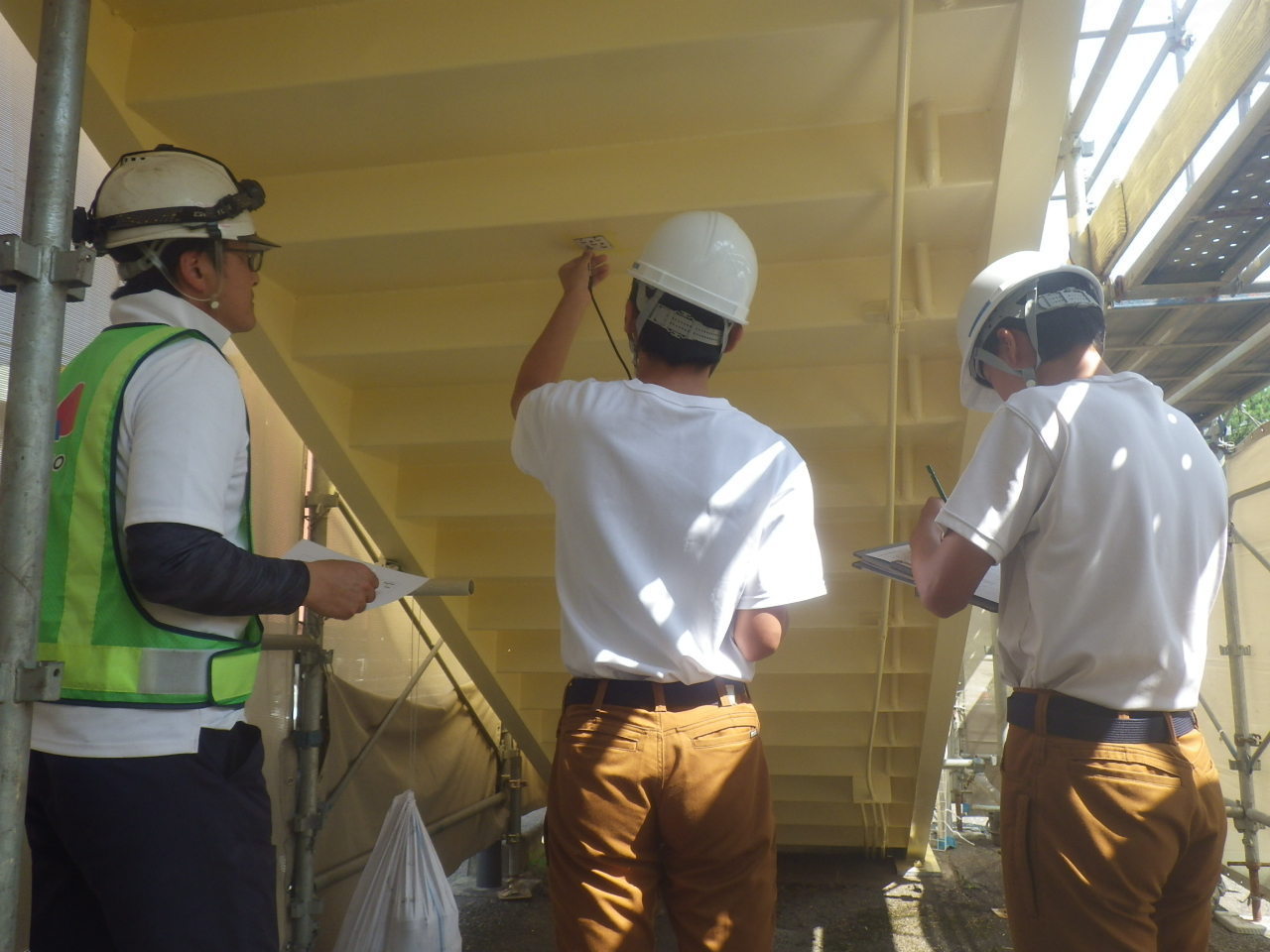 この日は新たに塗装しなおした歩道橋の塗膜の厚さチェックをおこないました。