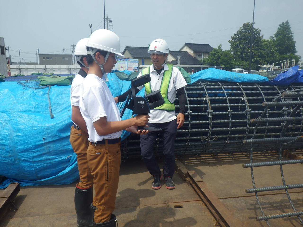 先日導入したばかりのハンディスキャナー体験や、当社社員との測量対決を行いました。