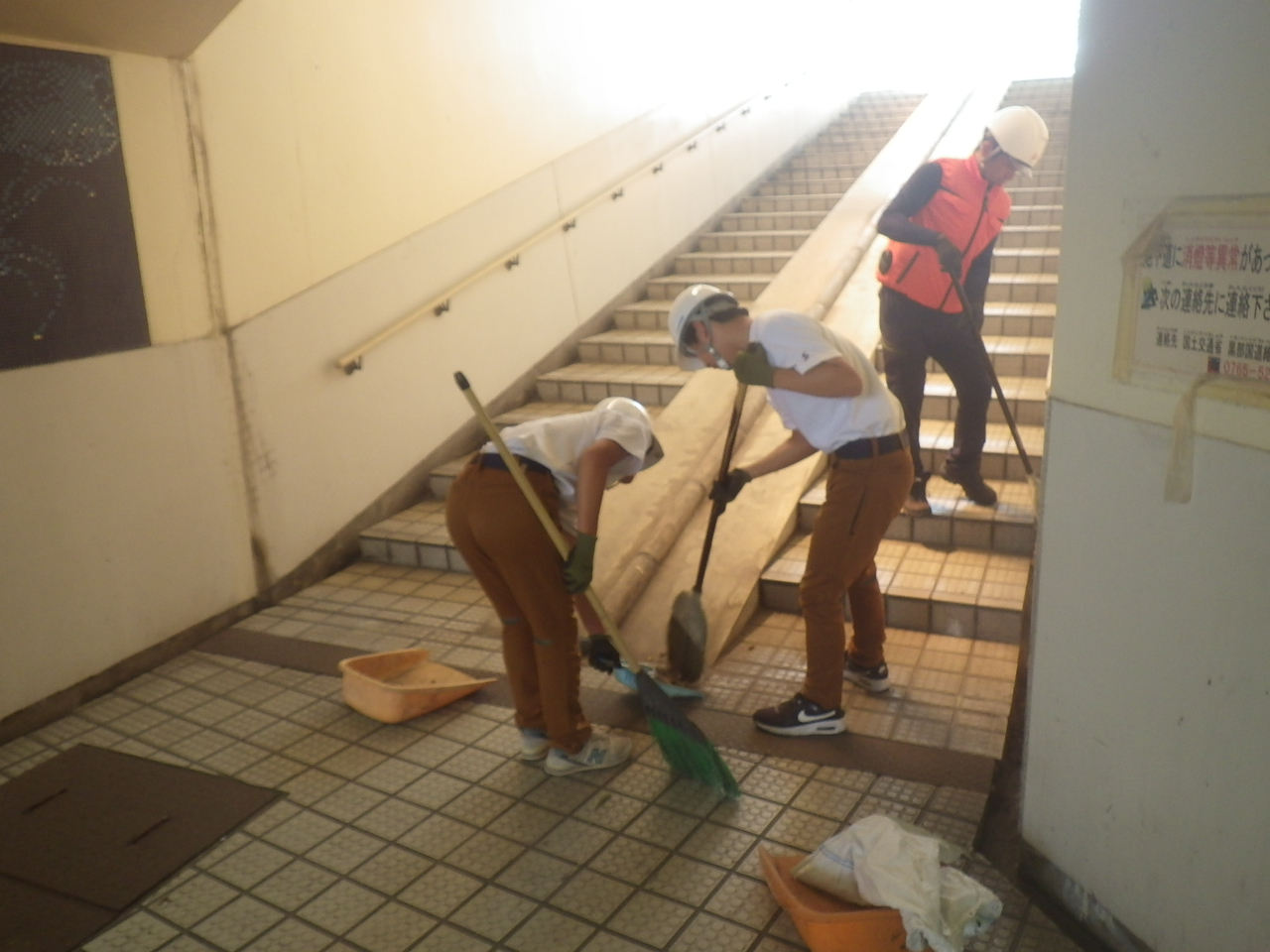 地下歩道の清掃では苦手な虫たちに悪戦苦闘しながらもしっかりと清掃作業を行いました。