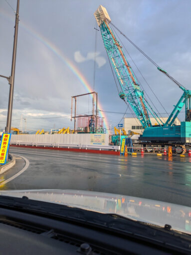 「工事現場に現れた虹が、クレーンで虹の架け橋を作り上げているように感じました。