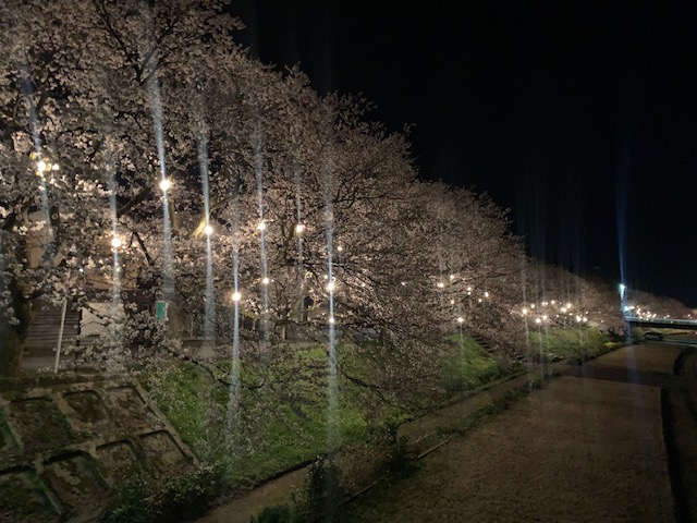当社から車で約10分ほどにある福光小矢部川沿いでも桜が満開となっており、現在ライトアップされていますので是非足を運んでみてください。お昼の桜も夜の桜もどちらも見ごたえがあります。