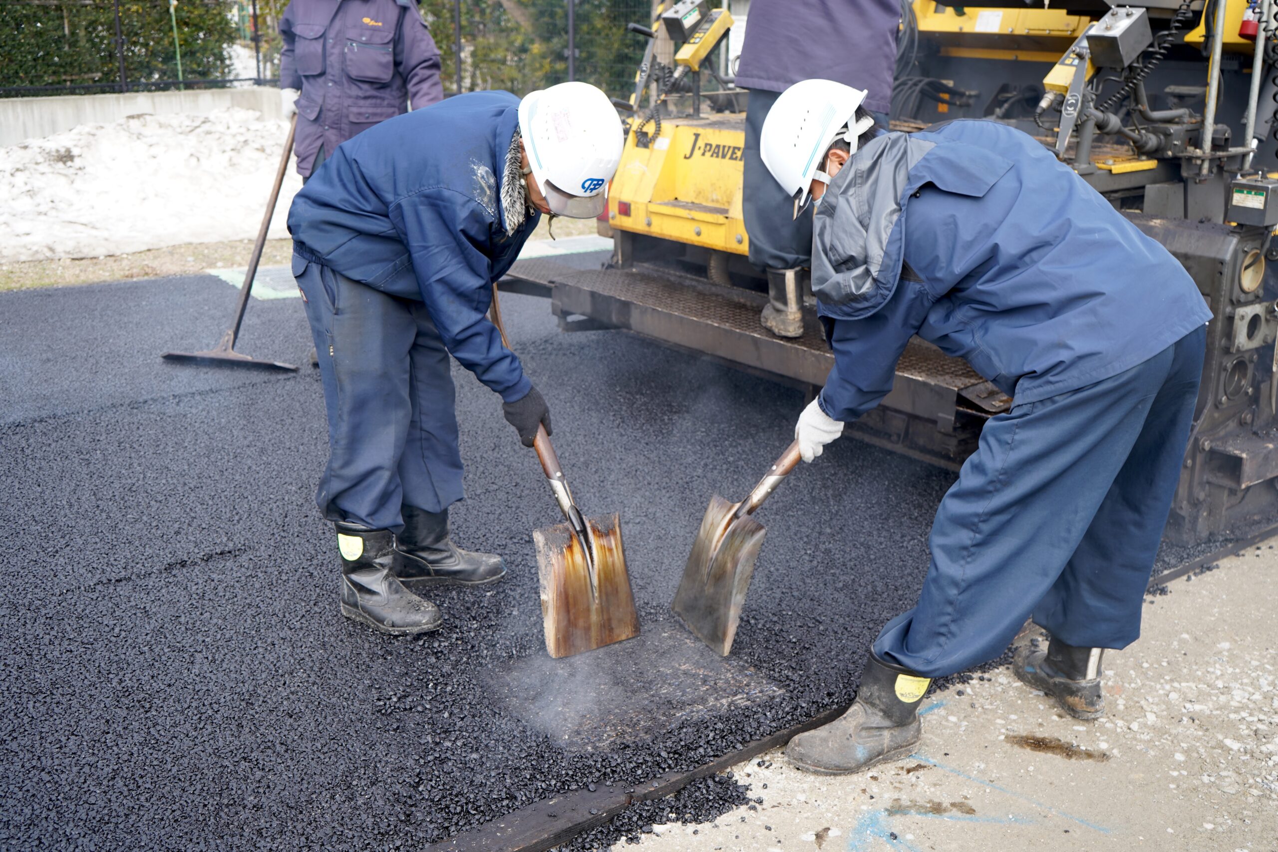 当社が請ける舗装工事の現場作業は、基本的に自社の社員さんで行います。どんな時も楽しくコミュニケーションを取ることで、みんなが気持ちよく働けて、仕事がスムーズに進むようにしたいと常日頃から思っています。