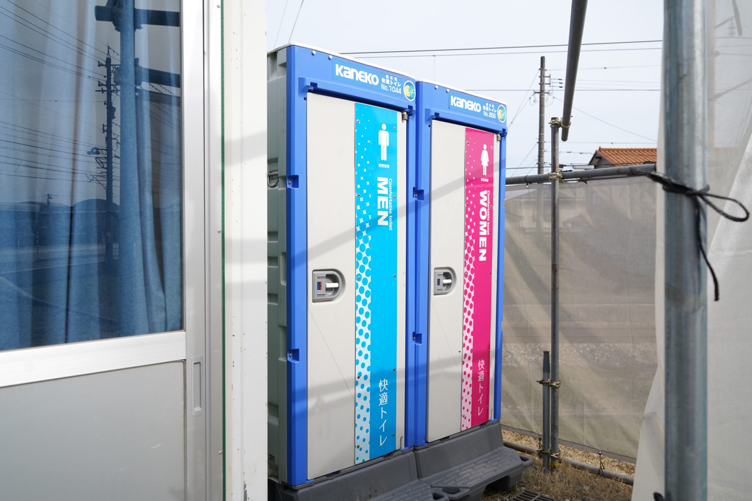 現場事務所横のトイレ。女性専用もしっかりと用意されています。嫌な臭いもない!