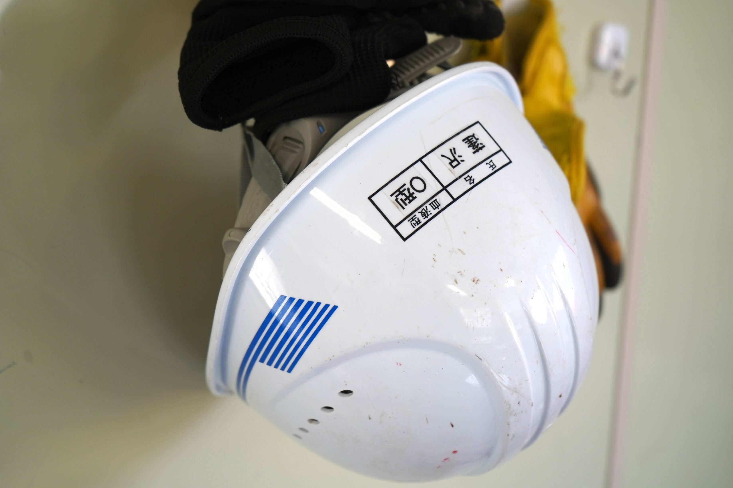 万が一に備えて血液型も記載されているマイヘルメット。常にこれを被って現場へ!