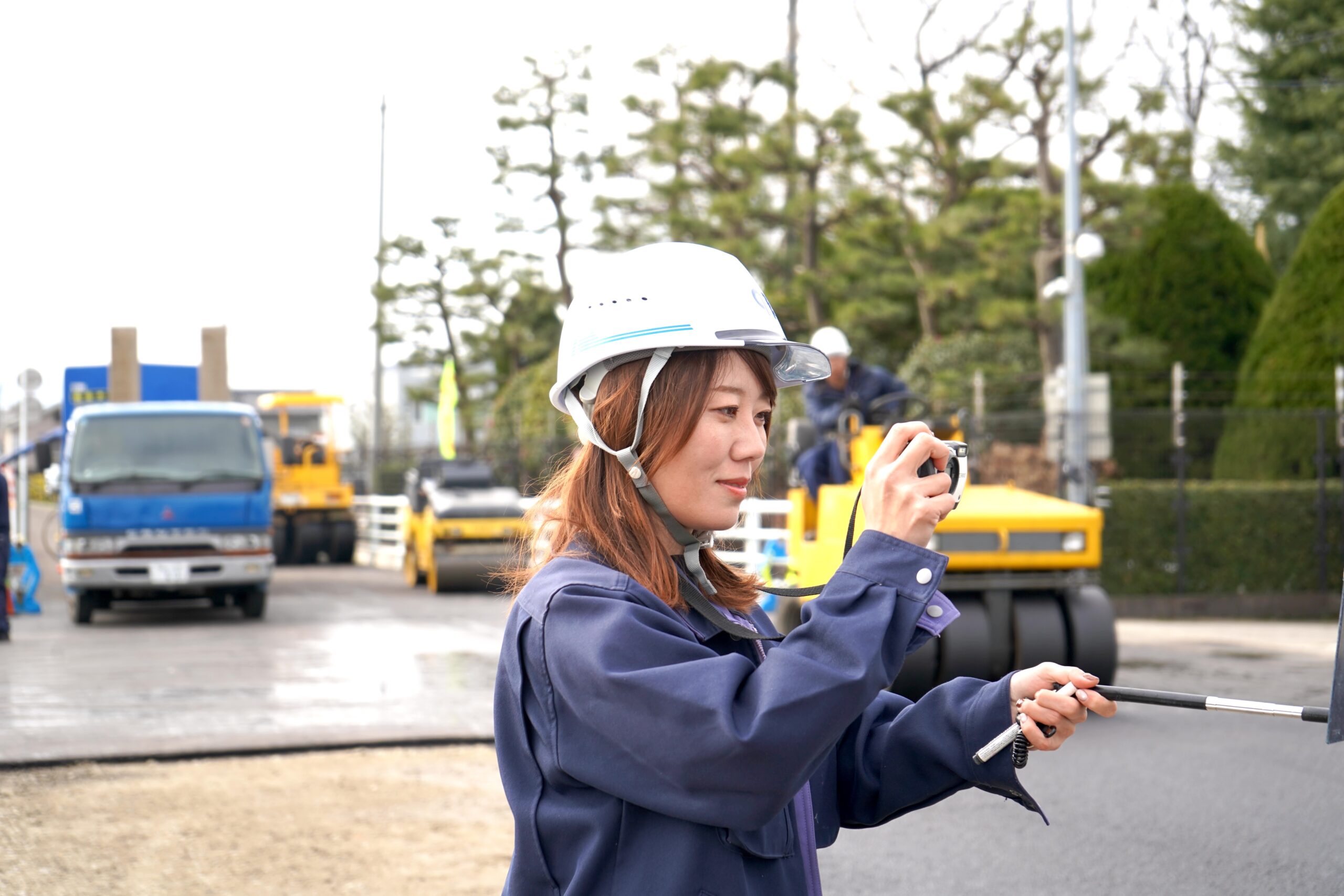 今までの業務で土木工事に関わったことはありましたが、舗装工事は今回が初めて。初めて聞く業界用語や作業が多かったですね。まず、工事の設計書をよく読んで、工事の内容を理解するところから始めました。本当に初めてだったので!