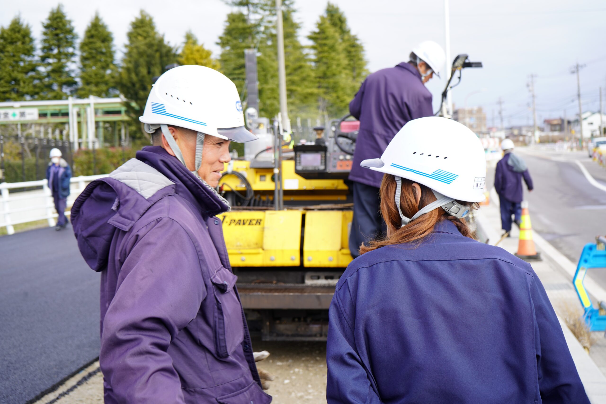 今回初めて関わった舗装工事は、他の土木現場みたいに「ゼロからつくる」ではありませんが、つくった道路は地図に残ります。自分たちが関わった道をたくさんの人が使ってくれる。それはこの仕事の大きなやりがいです。