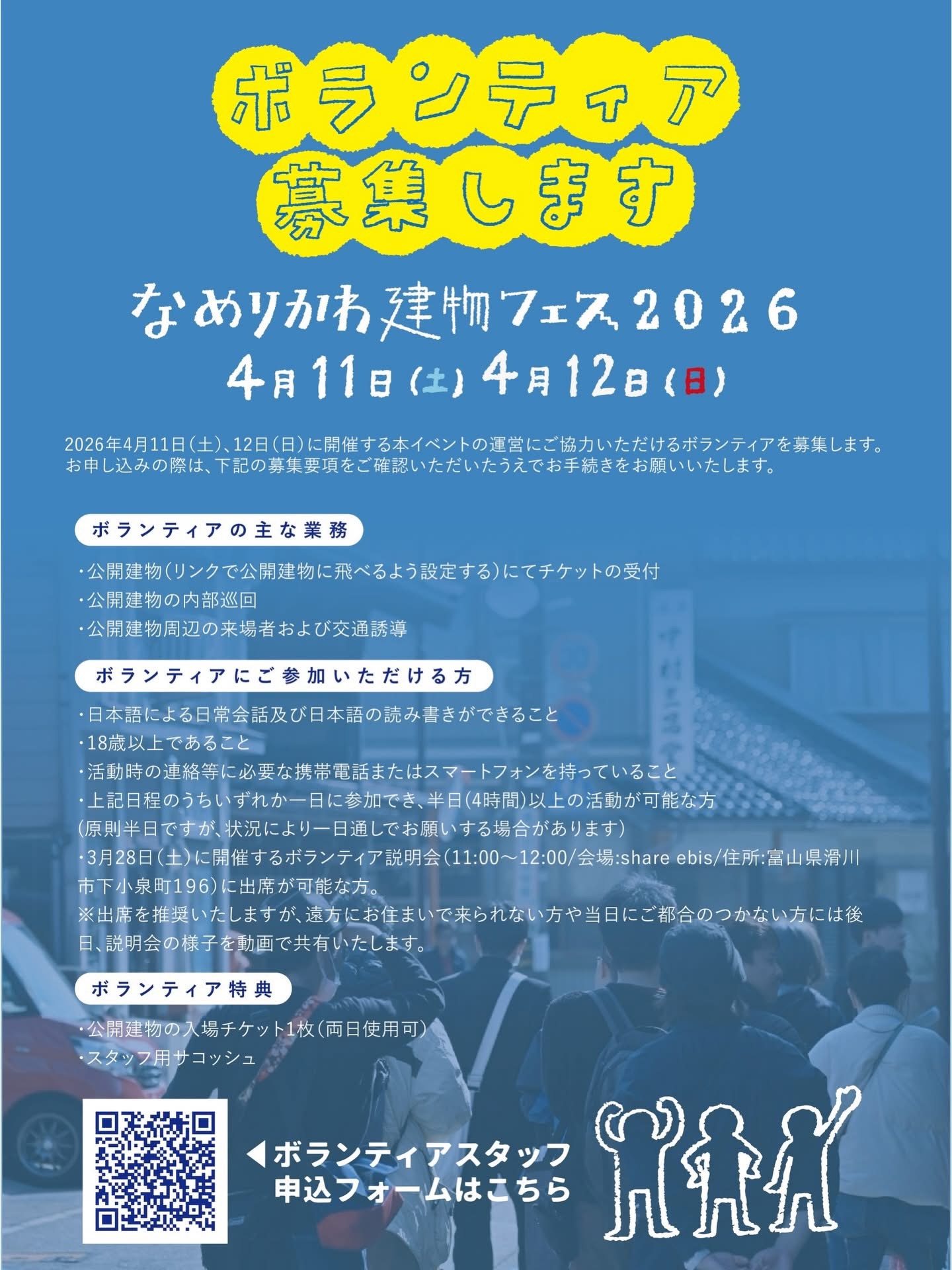なめりかわ建物フェス2026 〜ボランティア募集!〜