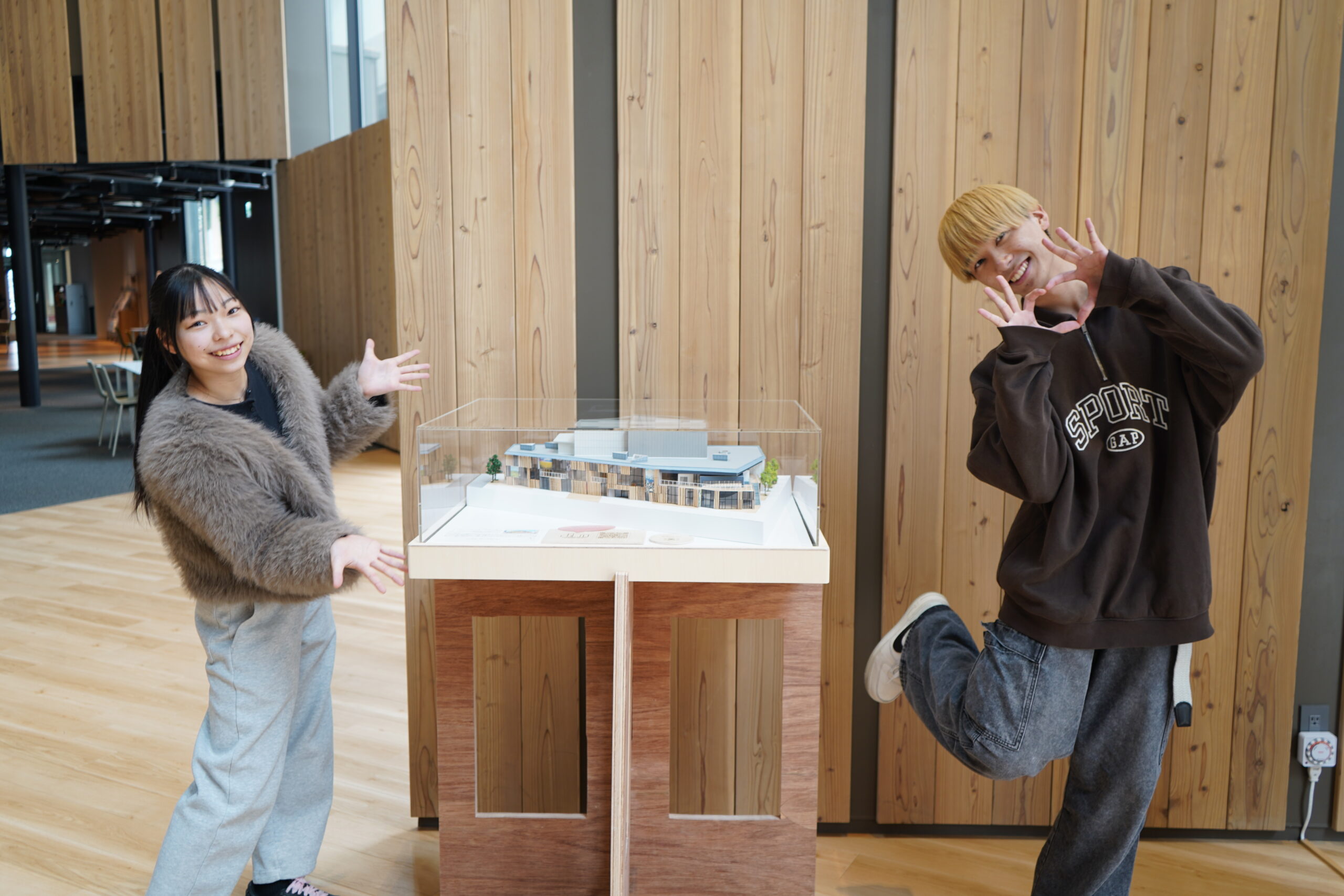 この模型は、令和7年度高岡工芸高校建築学科の課題研究で製作したもの。